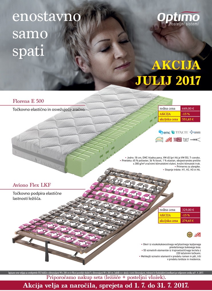 Za vroče julijske dni smo pripravili akcijsko osvežitev - 15% POPUST za ležišče Florena E500 in serijo Aviono FLEX:
